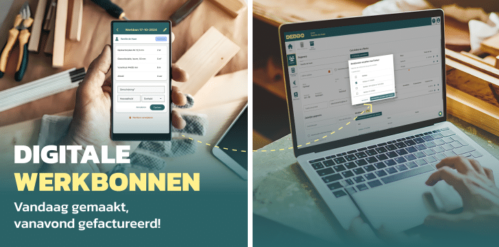 Een gemaakte werkbon op je mobiele telefoon zet je later op je computer met één klik om naar een factuur. Ideaal voor als je op regiebasis werkt of overzicht wilt houden op je gewerkte uren en materialen.